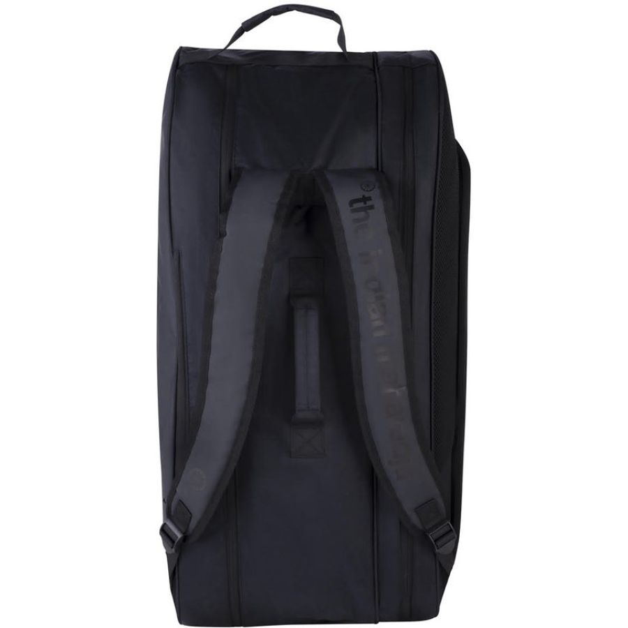 The Indian Maharadja Tennis Backpack TCMR 8 is een ruime en professioneel uitgevoerde tennistas, ontwikkeld voor fanatieke tennissers. De tas is gemaakt van hoogwaardig 900D polyester in combinatie met slijtvast en waterafstotend tarpaulin, waardoor hij geschikt is voor intensief gebruik. Met een inhoud van circa 46 liter biedt de TCMR 8 ruimte voor 8 tot 9 rackets en al je overige tennisuitrusting. De tas heeft twee aparte hoofdcompartimenten, waarvan één is voorzien van isothermisch materiaal om je rackets te beschermen tegen hitte en kou. Beide compartimenten zijn uitgerust met stevige dubbele ritsen. Daarnaast beschikt de tas over een apart schoenenvak en twee ruime zijvakken voor accessoires, waardevolle spullen of andere benodigdheden. De TCMR 8 kan worden gedragen met de twee handvatten of als rugzak, dankzij de verstelbare en gewatteerde schouderbanden. Dit zorgt voor comfortabel en ergonomisch dragen, of je nu naar de baan fietst of een toernooi bezoekt. The Indian Maharadja Tennis Backpack TCMR 8 is een functionele, ruime en duurzame tennistas voor spelers die veel meenemen en geen concessies willen doen aan kwaliteit.